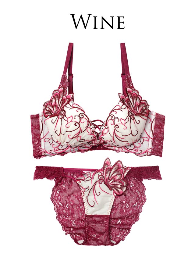 【Reinest】アラベスクパピヨンレース育乳脇高★魔法のブラジャー&バック透けフルバックショーツ[大人気]