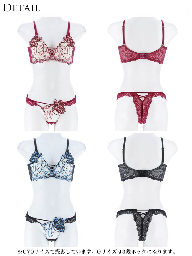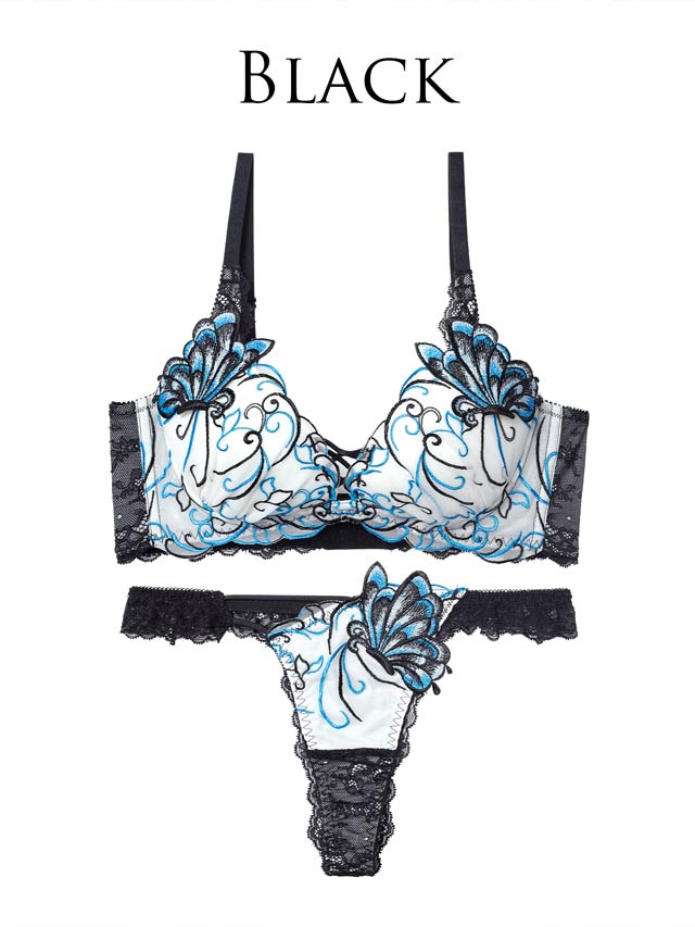 ダスティブルームエンブロイダリー育乳脇高ブラジャー&バック透けフルバックショーツ