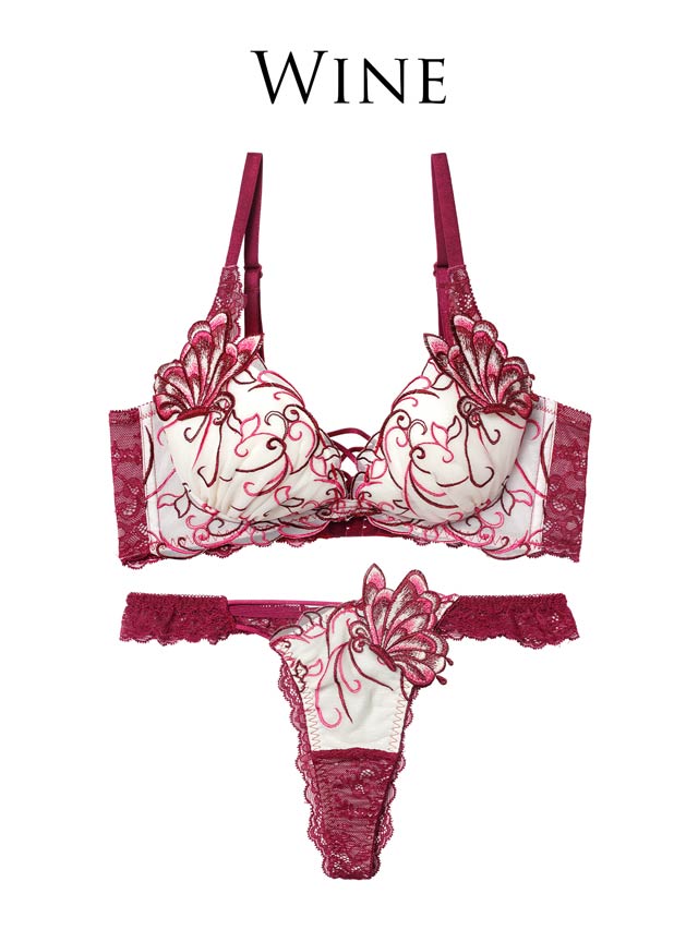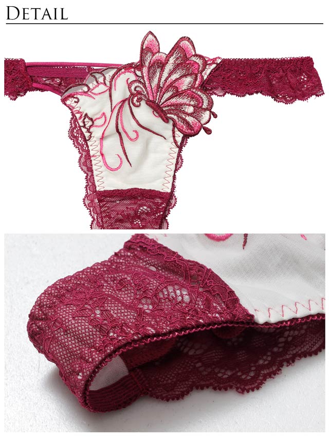 【Reinest】アラベスクパピヨンレース育乳脇高★魔法のブラジャー&バック透けTバックショーツ[大人気]