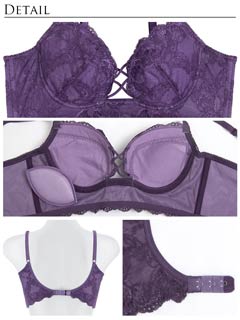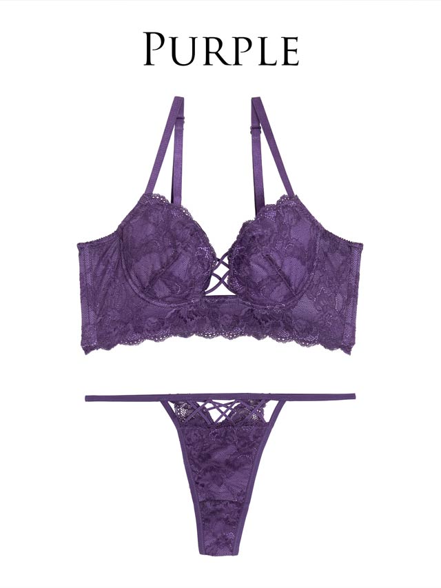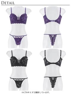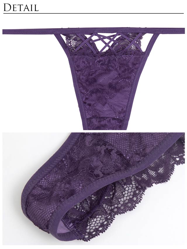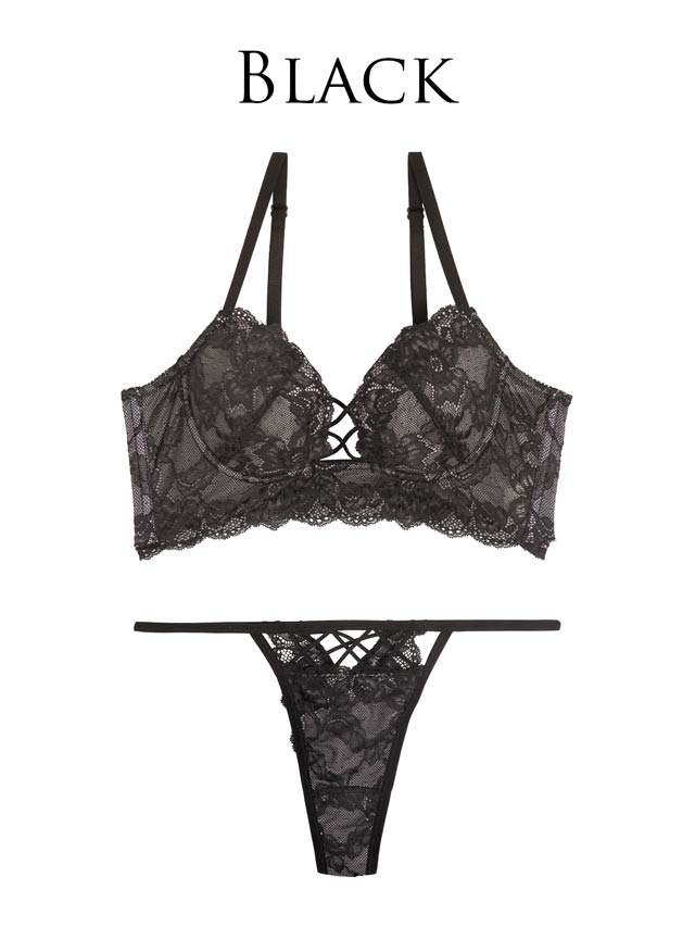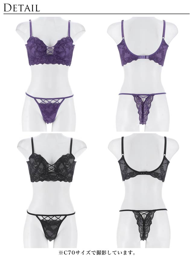 オールレースカットストリング育乳脇高ブラジャー&バック透けフルバックショーツ