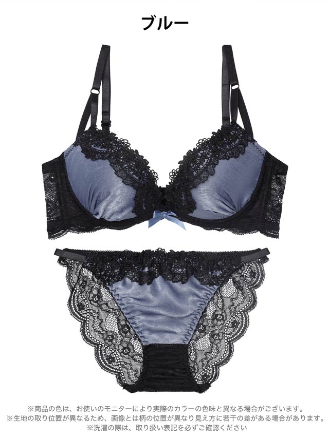 11/28新作!シックサテンレーシィ育乳脇高ブラジャー&バック透けフルバックショーツ[激売れ]