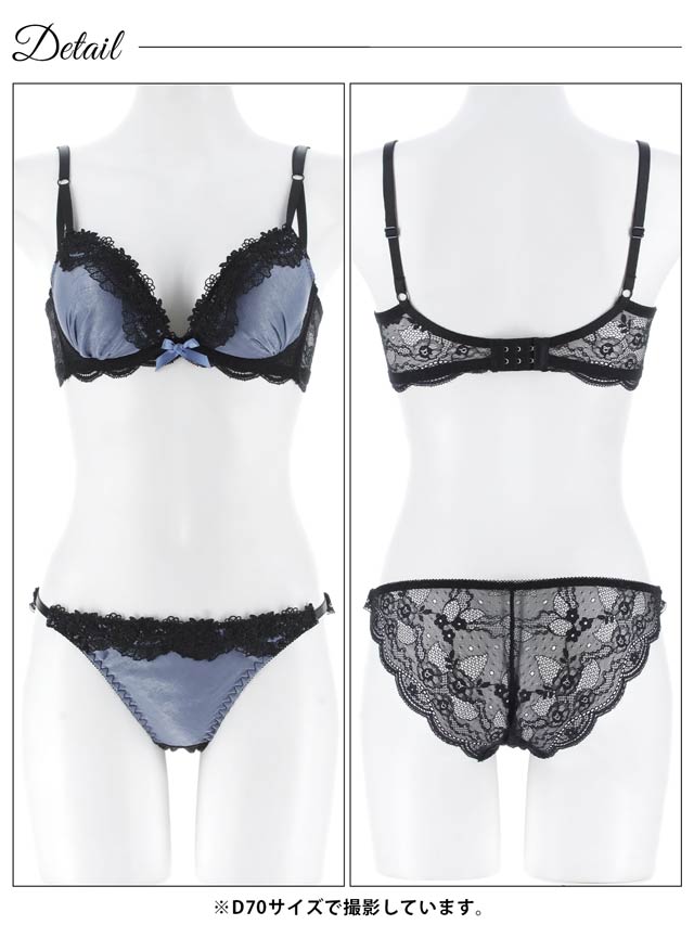 11/21新作!【三上悠亜着用】シャドウレースビジューホール育乳脇高ブラジャー&バック透けフルバックショーツ[激売れ]