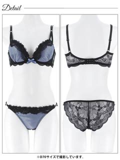 ダスティブルームエンブロイダリー育乳脇高ブラジャー&バック透けフルバックショーツ