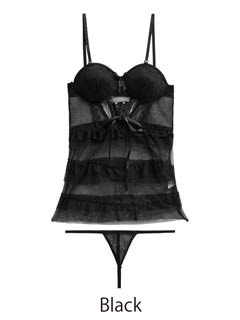 12/4再販!【4点セット】ダークレースアップビジューベビードール