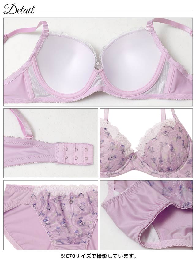 ダスティブルームエンブロイダリー育乳脇高ブラジャー&バック透けフルバックショーツ