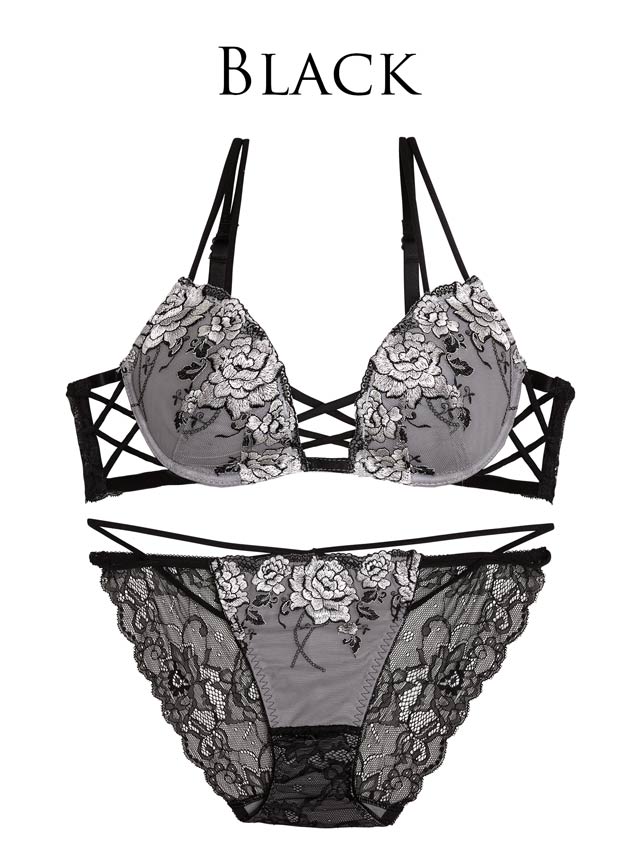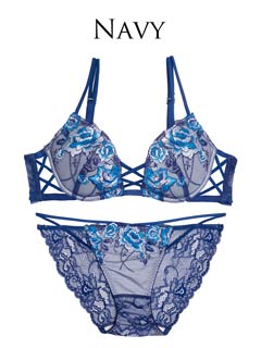 ダスティブルームエンブロイダリー育乳脇高ブラジャー&バック透けフルバックショーツ