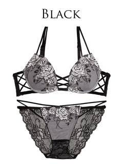ロマンティックベルローズ育乳脇高ブラジャー&バック透けフルバックショーツ