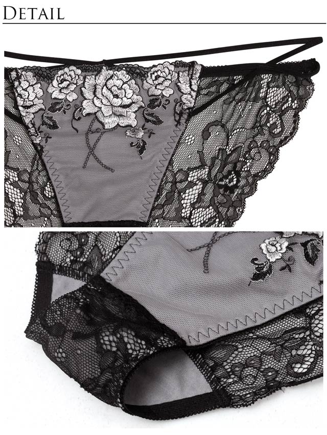 オールレースカットストリング育乳脇高ブラジャー&バック透けフルバックショーツ