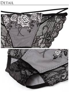 11/15再販!ダスティジュエルフラワー育乳脇高ブラジャー&サイド紐バック透けフルバックショーツ[激売れ]