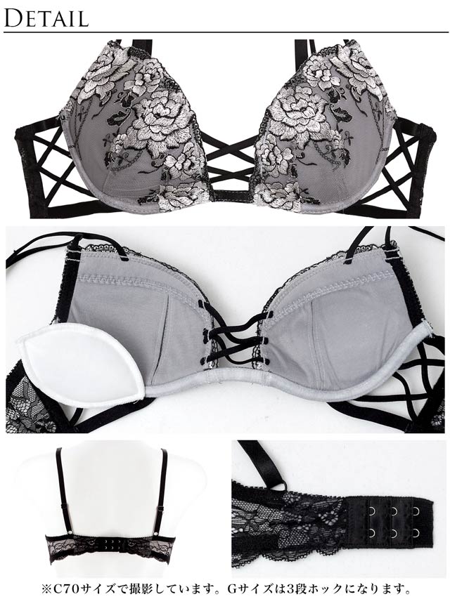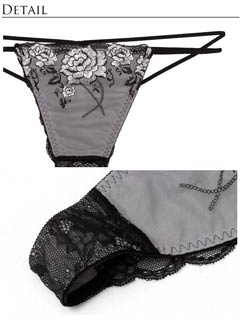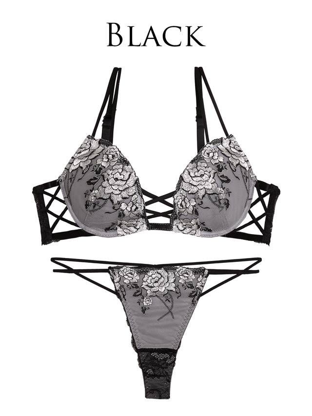 ダスティブルームエンブロイダリー育乳脇高ブラジャー&バック透けフルバックショーツ