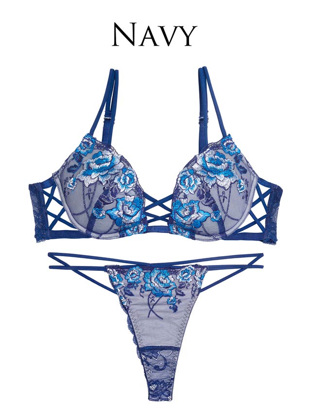 12/2再販!ダスティブルームエンブロイダリー育乳脇高ブラジャー&バック透けフルバックショーツ[激売れ]