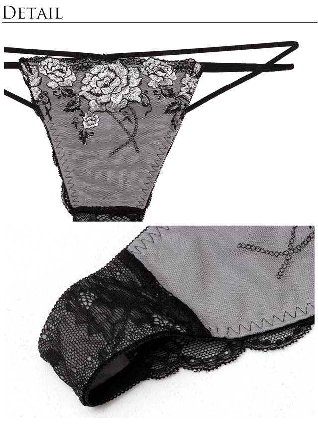オールレースカットストリング育乳脇高ブラジャー&バック透けフルバックショーツ