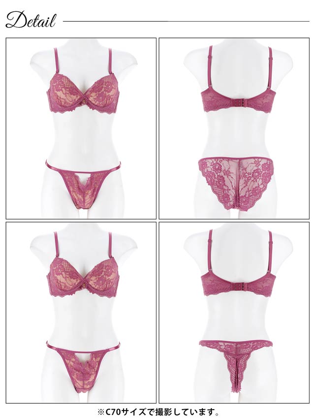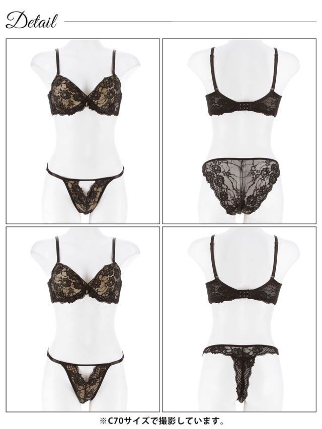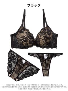 オールレースカットストリング育乳脇高ブラジャー&バック透けフルバックショーツ