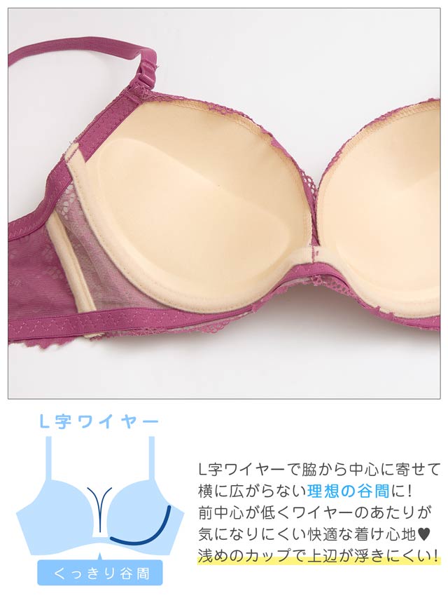 ダスティブルームエンブロイダリー育乳脇高ブラジャー&バック透けフルバックショーツ