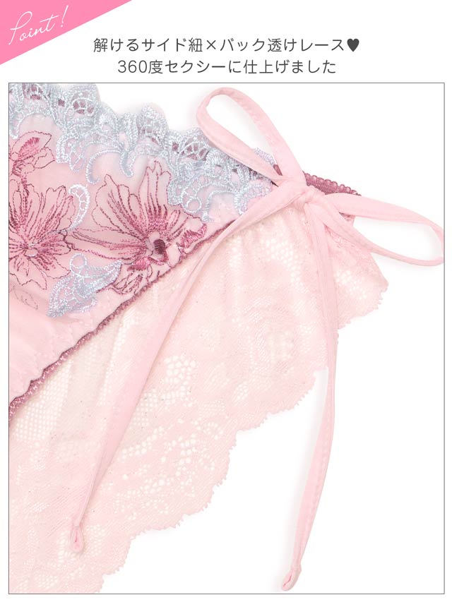 11/5新作!フェアリーアネモネブルーム育乳脇高ブラジャー&サイド紐バック透けフルバックショーツ[激売れ]