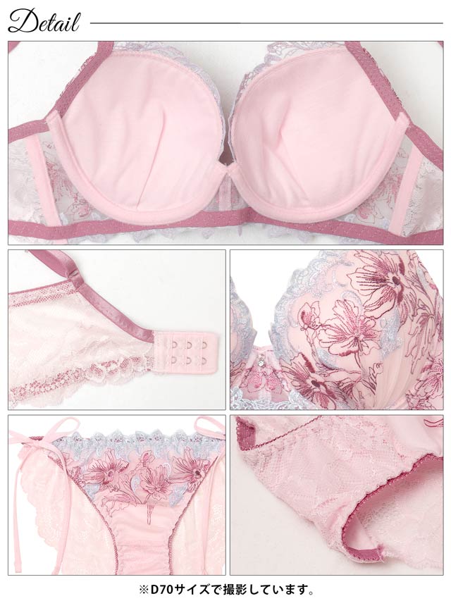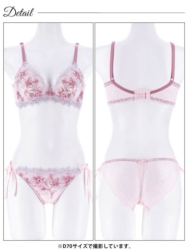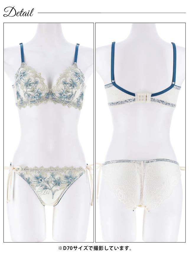 ダスティブルームエンブロイダリー育乳脇高ブラジャー&バック透けフルバックショーツ