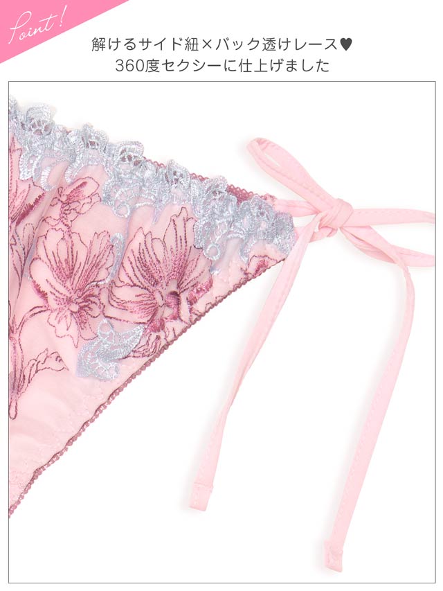 11/5新作!フェアリーアネモネブルーム育乳脇高ブラジャー&サイド紐バック透けTバックショーツ[激売れ]