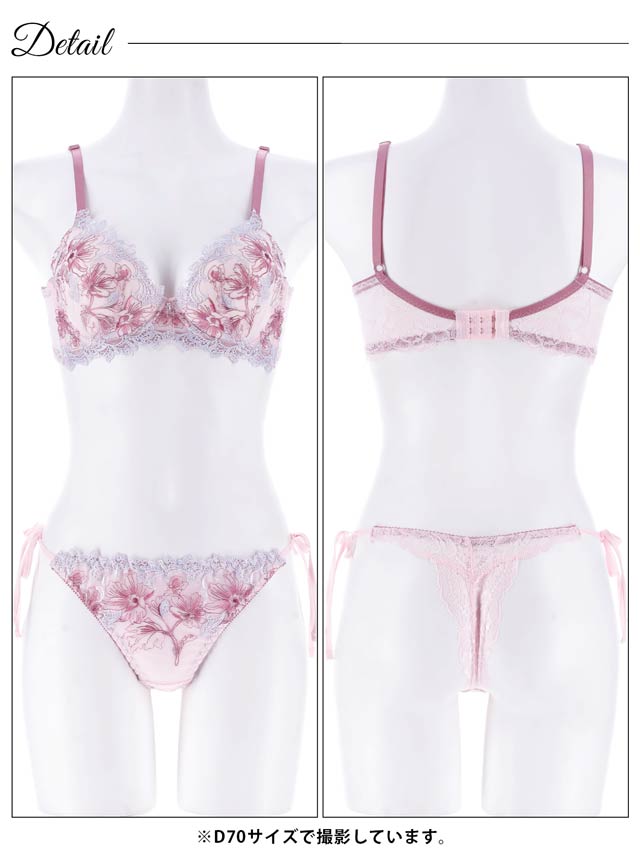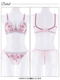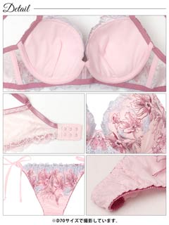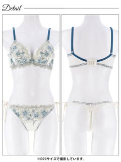ダスティブルームエンブロイダリー育乳脇高ブラジャー&バック透けフルバックショーツ