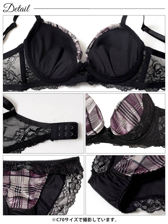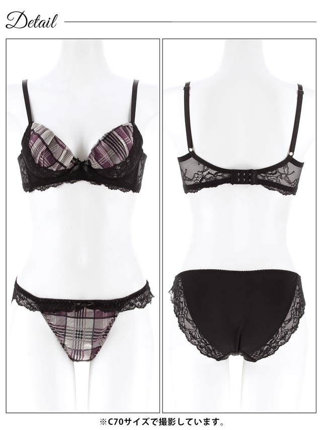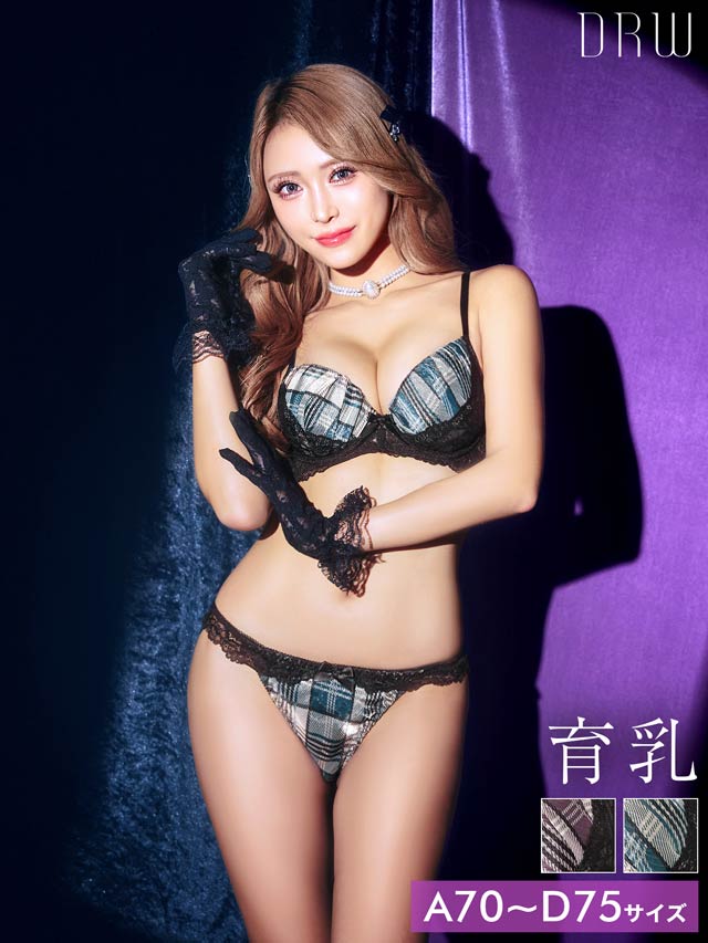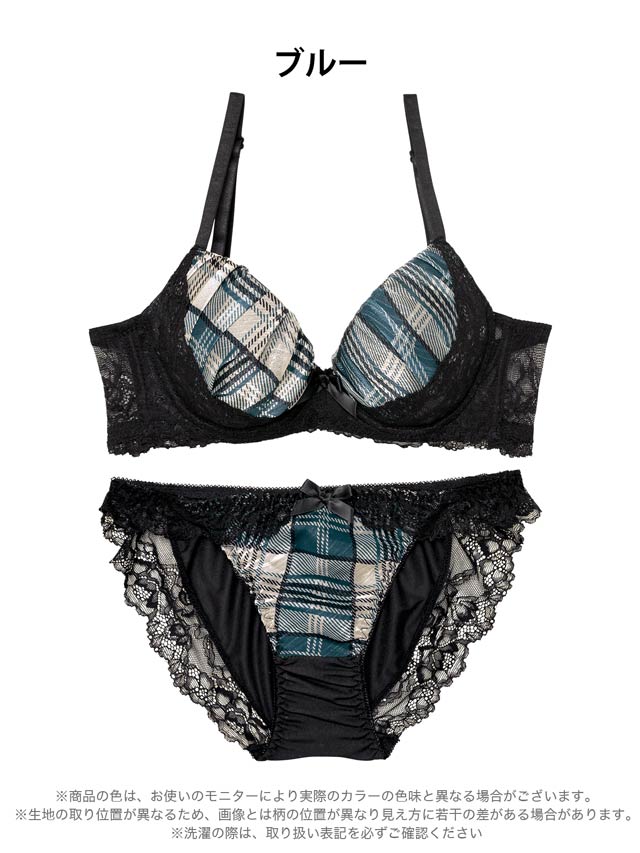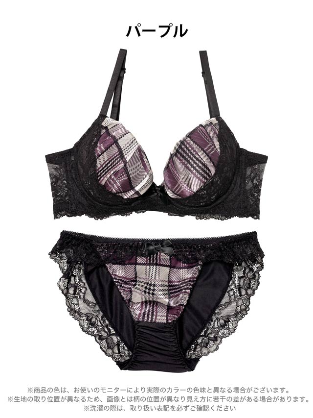 11/7新作!ノーブルチェックレーシィ育乳脇高ブラジャー&フルバックショーツ[激売れ]