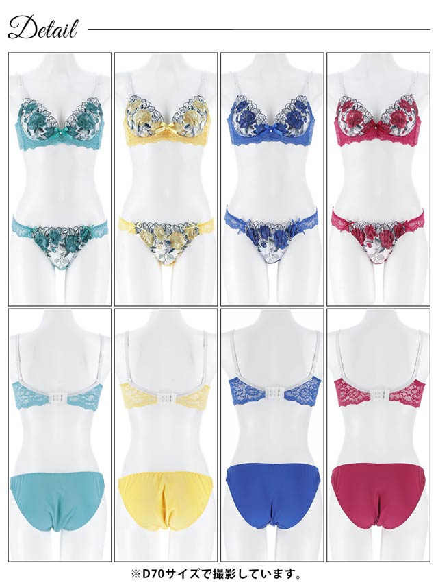 エレガンスフラワー刺繍ブラジャー&フルバックショーツ[1250DRW]