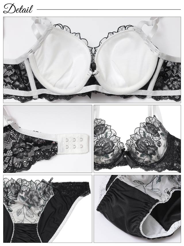 12/2再販!【三上悠亜着用】エレガンスフラワー刺繍ブラジャー&フルバックショーツ[激売れ]