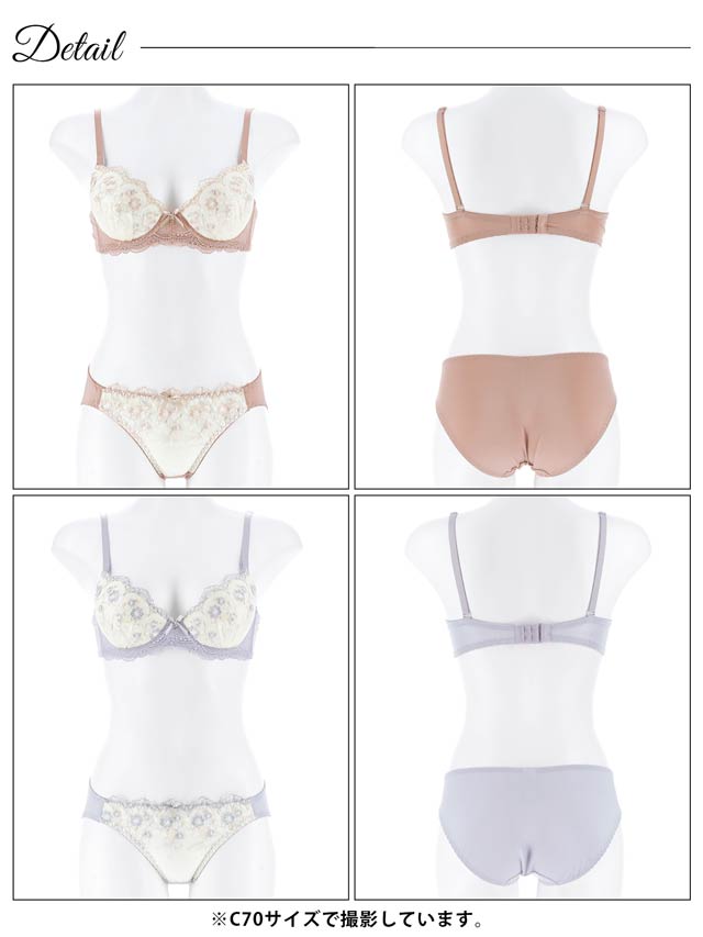ダスティブルームエンブロイダリー育乳脇高ブラジャー&バック透けフルバックショーツ