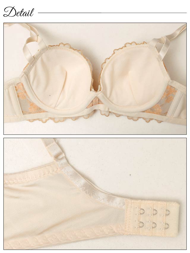 ダスティブルームエンブロイダリー育乳脇高ブラジャー&バック透けフルバックショーツ