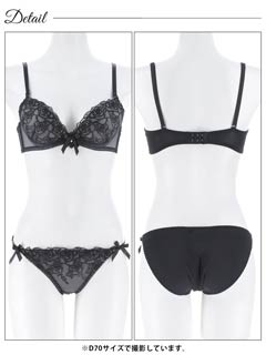 フロレゾンローズレース育乳脇高ブラジャー&サイド紐バック透けフルバックショーツ