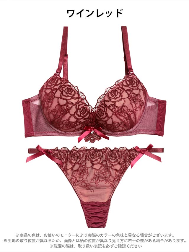 11/8再販!ロマンティックベルローズ育乳脇高ブラジャー&バック透けフルバックショーツ[激売れ]