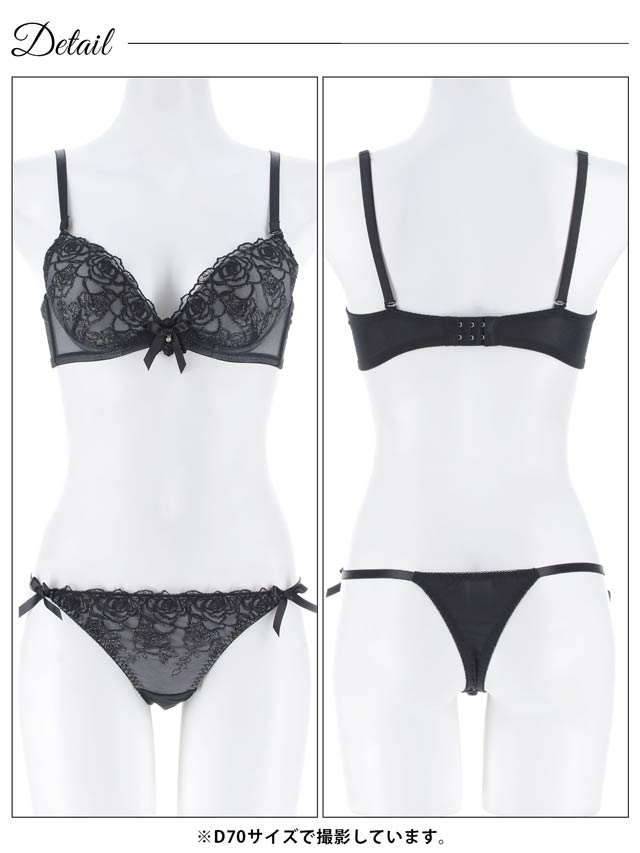 エレガンスフラワー刺繍ブラジャー&Tバックショーツ[1250DRW]