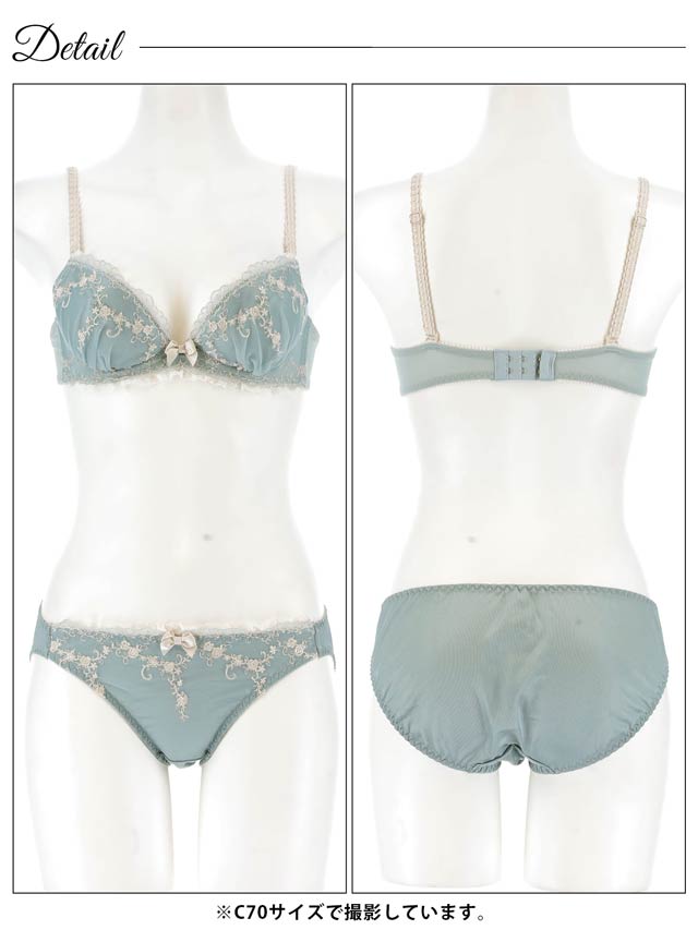 ダスティブルームエンブロイダリー育乳脇高ブラジャー&バック透けフルバックショーツ