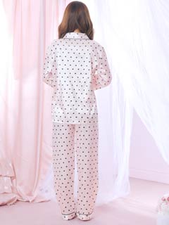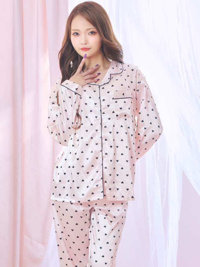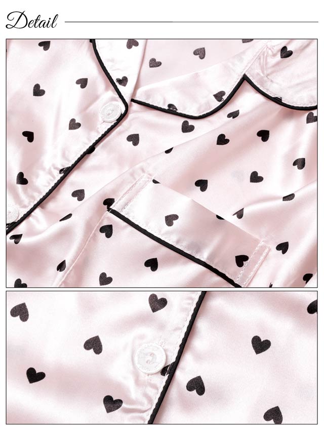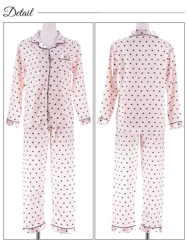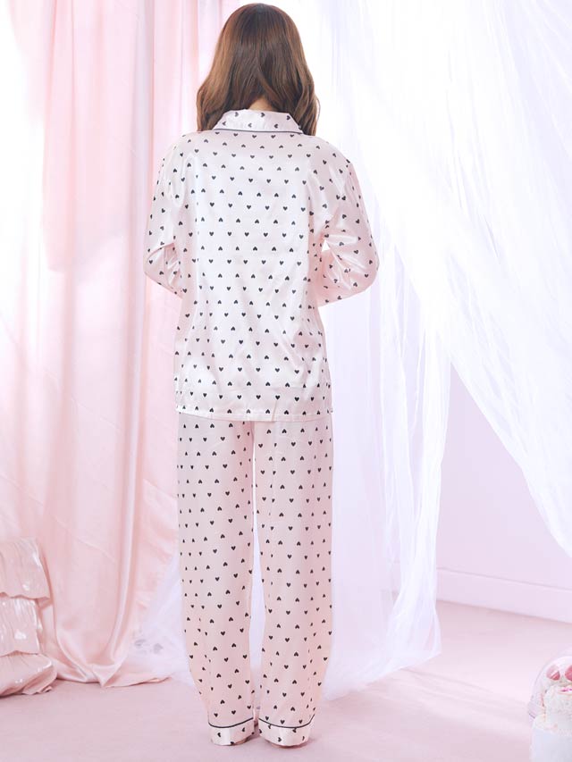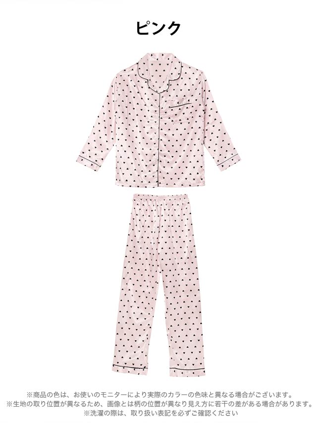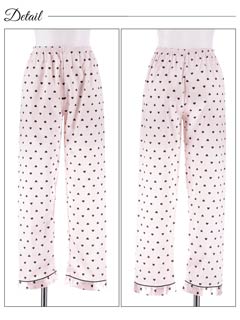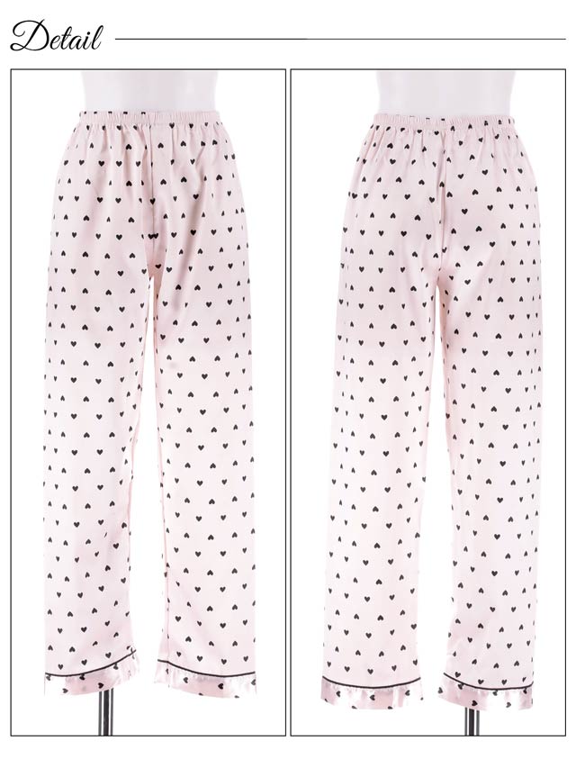 12/1新作!ガーリーハートサテントップス&ロングパンツルームウェア