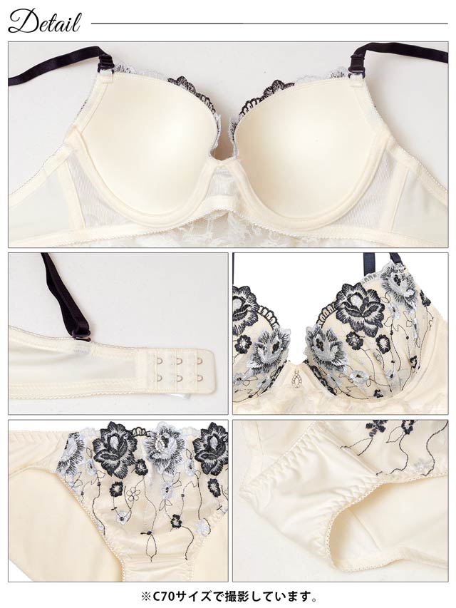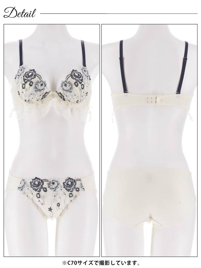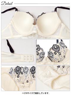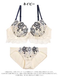 ダスティブルームエンブロイダリー育乳脇高ブラジャー&バック透けフルバックショーツ