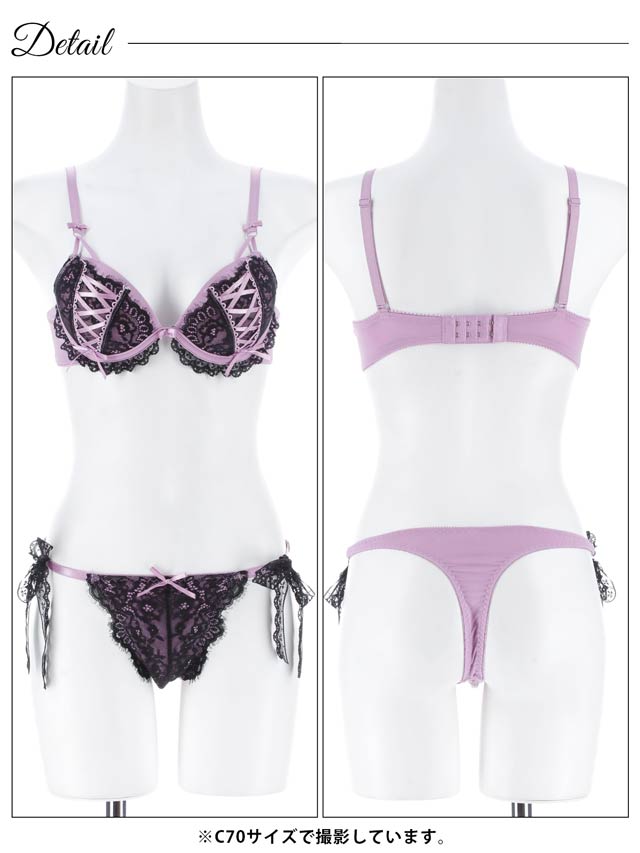 12/1新作!メルトリボンレースアップブラジャー&Tバックショーツ[激売れ]
