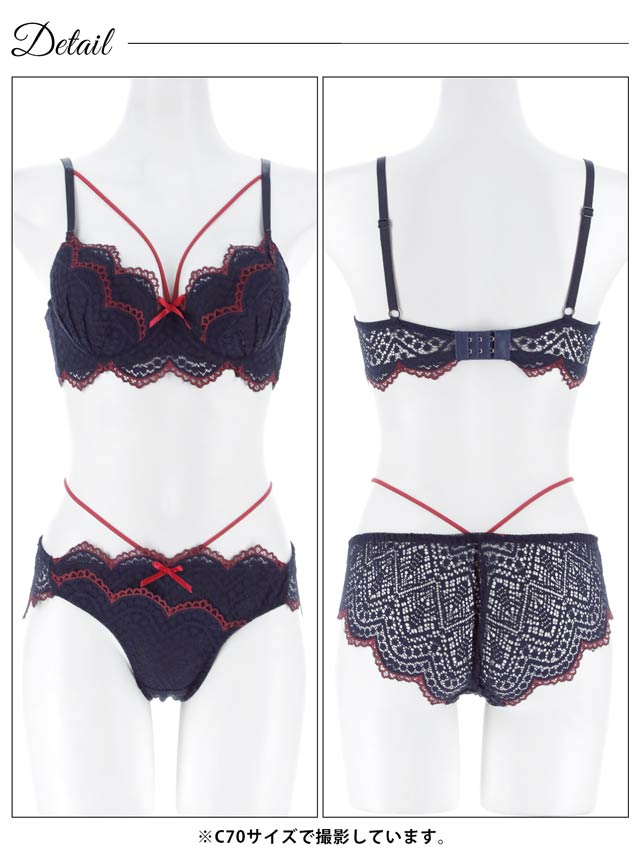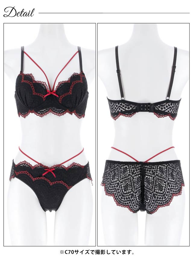 オールレースカットストリング育乳脇高ブラジャー&バック透けフルバックショーツ