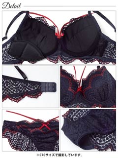 12/10新作!【EFサイズ】ノクターンレースコード育乳脇高ブラジャー&バック透けフルバックショーツ[大人気]
