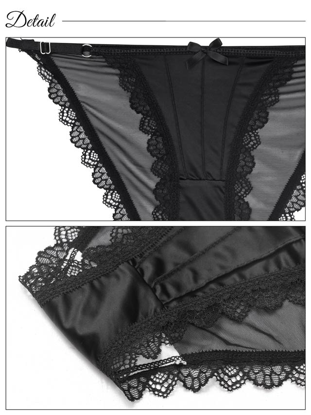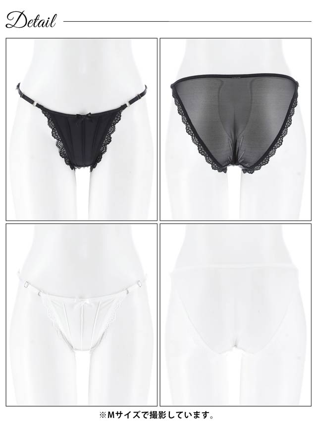 オールレースカットストリング育乳脇高ブラジャー&バック透けフルバックショーツ