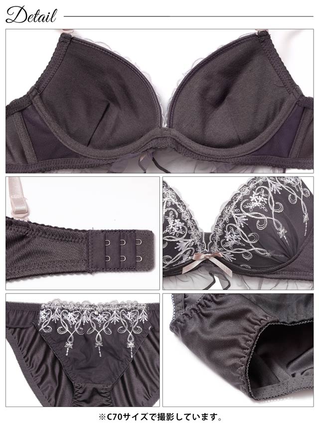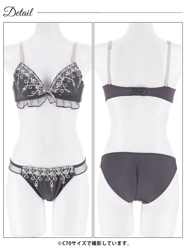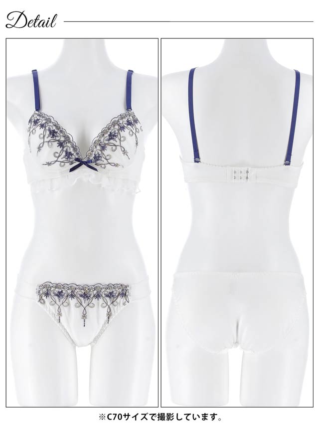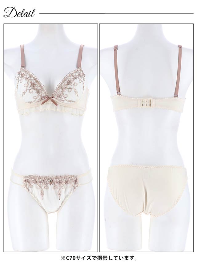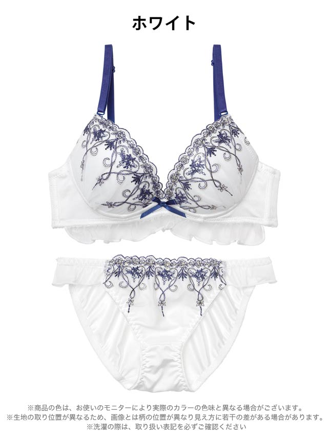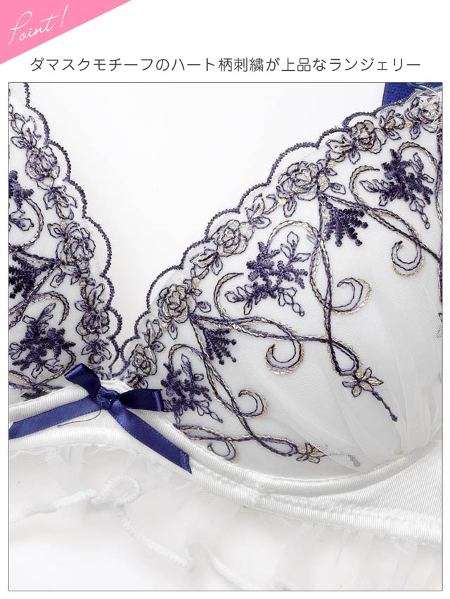ダスティブルームエンブロイダリー育乳脇高ブラジャー&バック透けフルバックショーツ