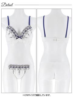 ダスティブルームエンブロイダリー育乳脇高ブラジャー&バック透けTバックショーツ