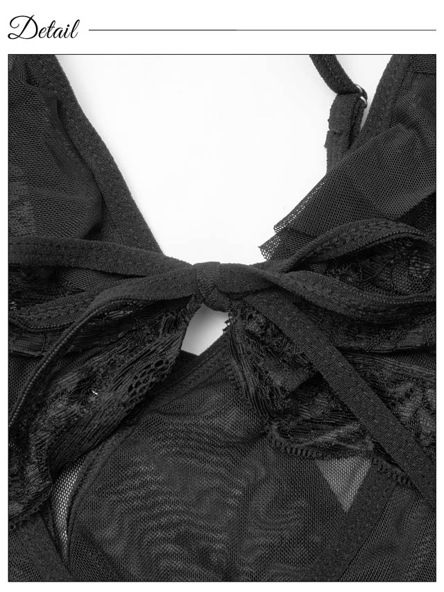 オールレースカットストリング育乳脇高ブラジャー&バック透けフルバックショーツ