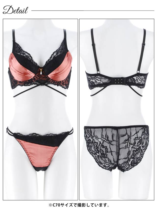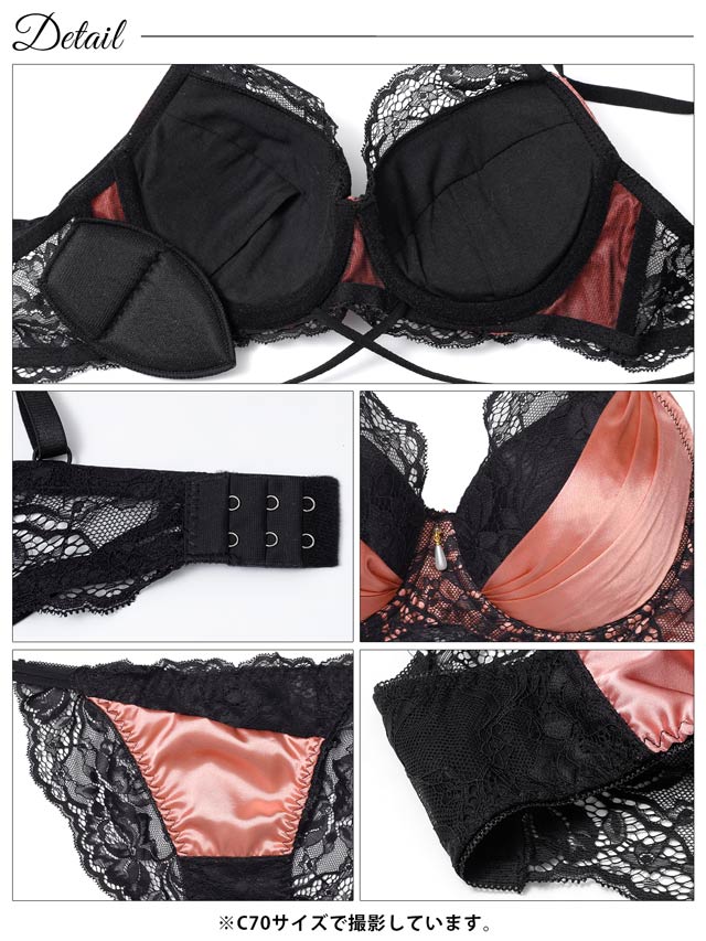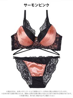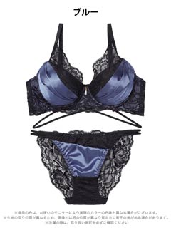 12/15新作!【EFサイズ】グロッシーサテンレース育乳脇高ブラジャー&バック透けフルバックショーツ[大人気]