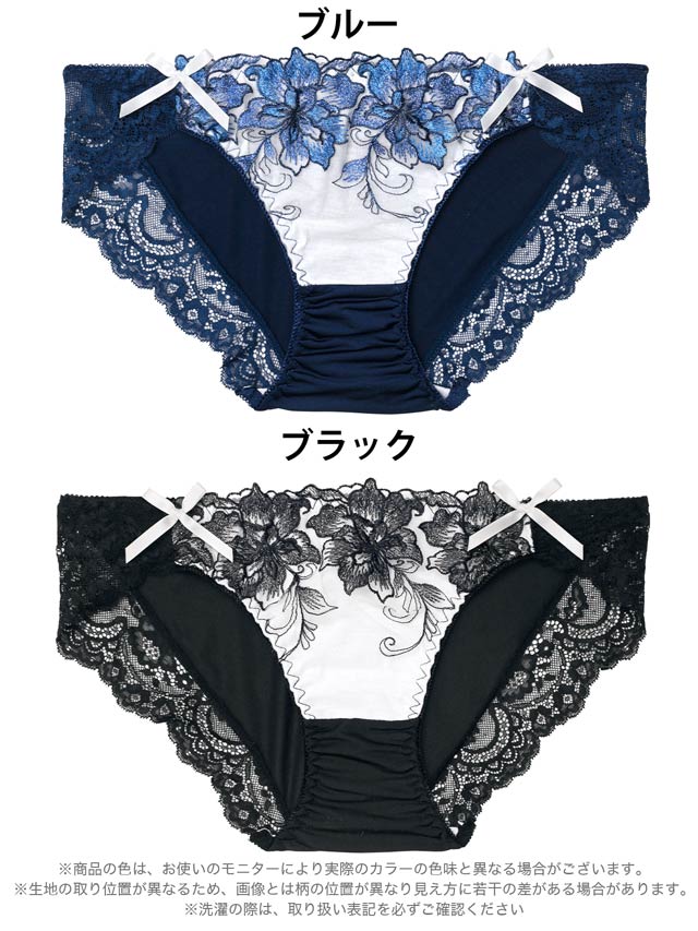 フロレゾンローズレース育乳脇高ブラジャー&サイド紐バック透けフルバックショーツ
