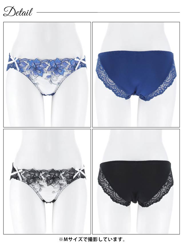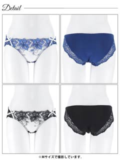 オールレースカットストリング育乳脇高ブラジャー&バック透けフルバックショーツ