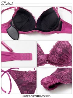 フロレゾンローズレース育乳脇高ブラジャー&サイド紐バック透けフルバックショーツ