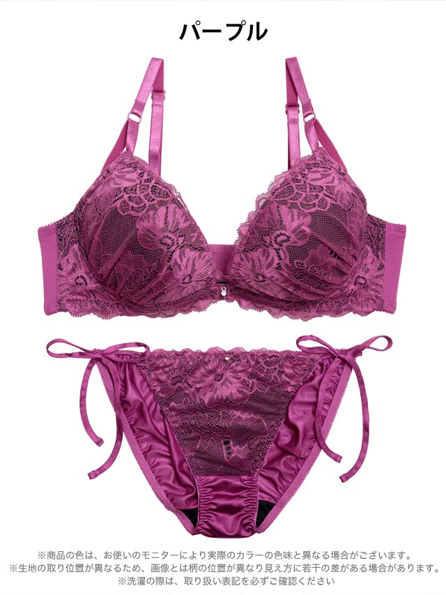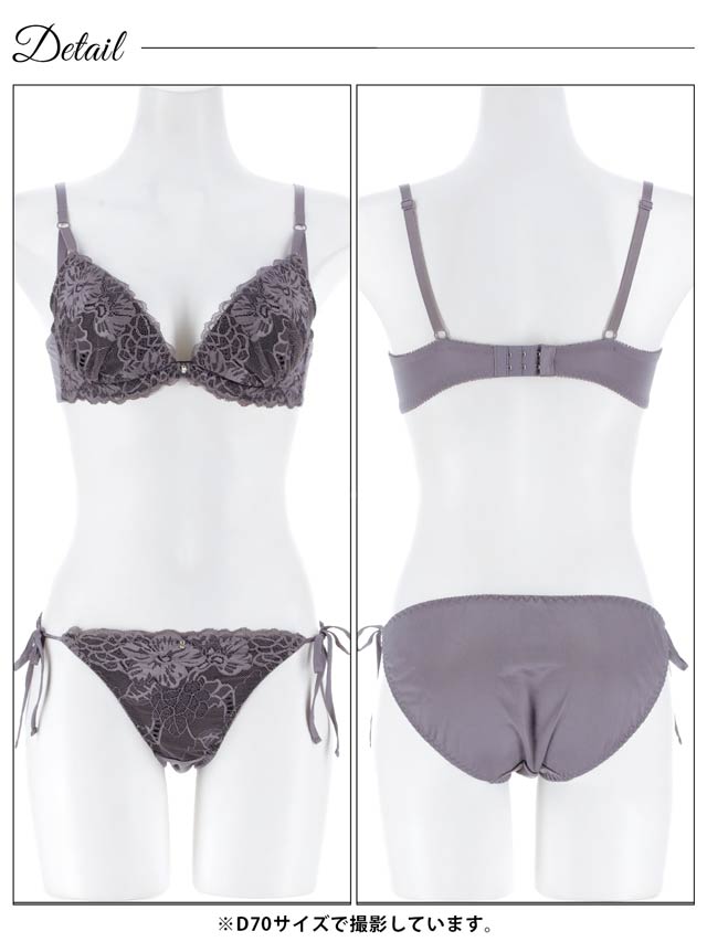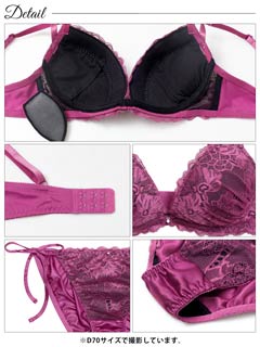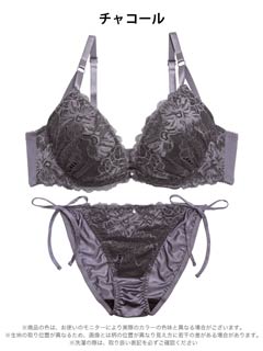 フロレゾンローズレース育乳脇高ブラジャー&サイド紐バック透けフルバックショーツ