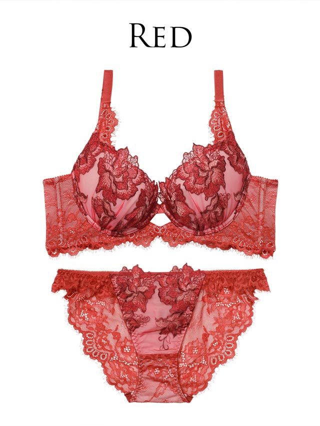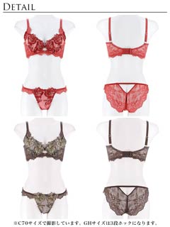 【Reinest】グラマーリッチローズエンブロイダリーブラジャー&バック透けTバックショーツ[セール対象品]