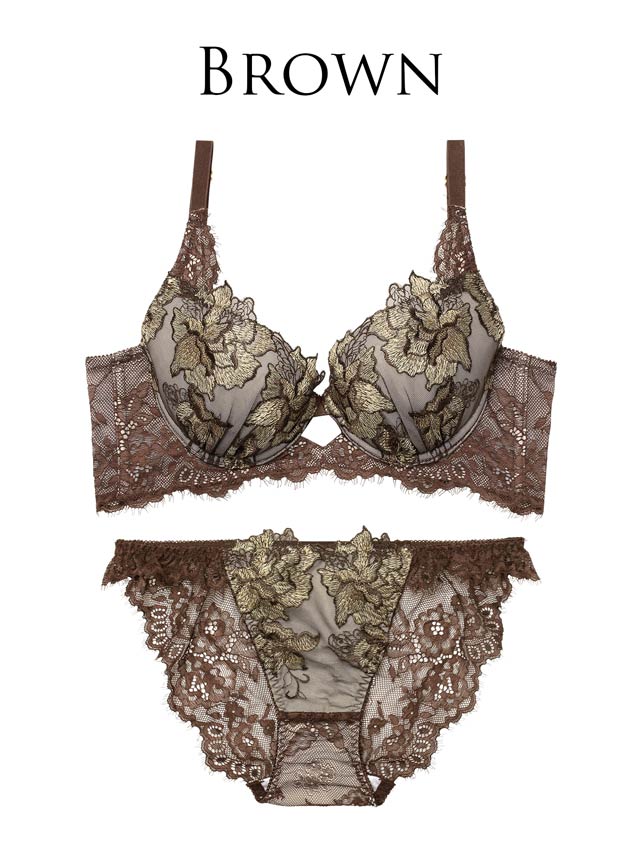 フロレゾンローズレース育乳脇高ブラジャー&サイド紐バック透けフルバックショーツ