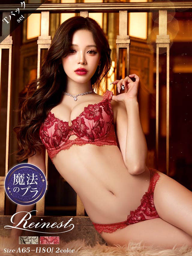 12/19新作!【Reinest】シャルムローズレース育乳脇高★魔法のブラジャー&バック透けTバックショーツ[大人気]