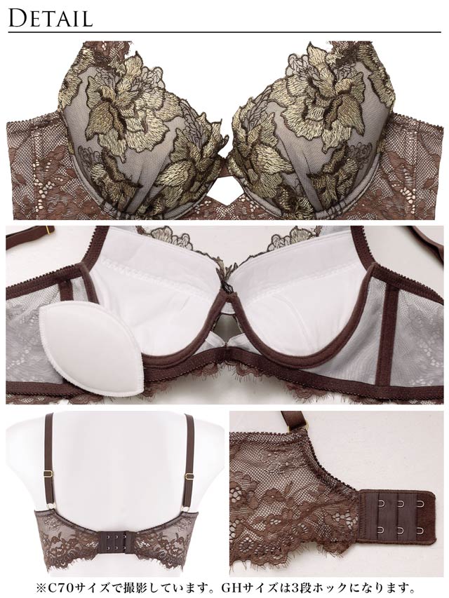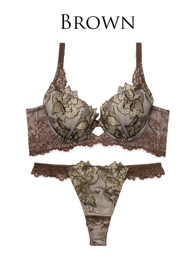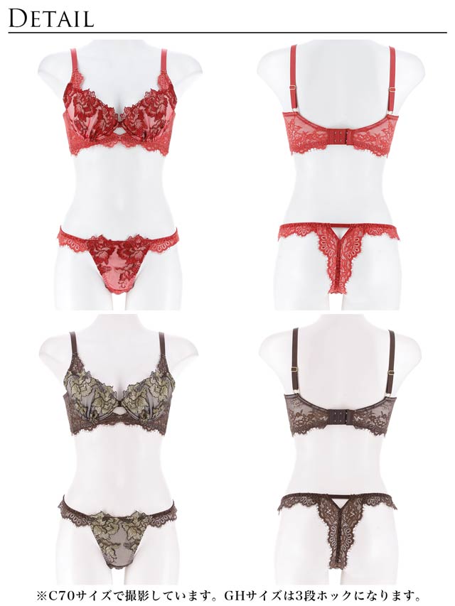 フロレゾンローズレース育乳脇高ブラジャー&サイド紐バック透けフルバックショーツ