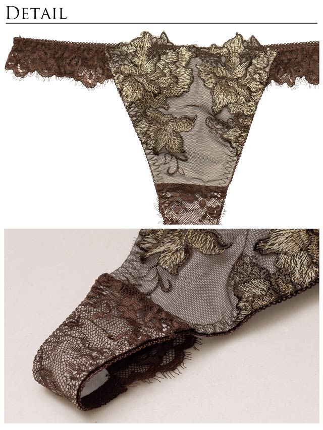 【Reinest】バロックリーフエンブロイダリーブラジャー&サイド紐バック透けTバックショーツ[大人気]